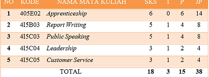 Mata Kuliah, Nilai SKS, Jumlah Jam Kuliah ( teori & praktik) untuk tiap semester pada Program Studi Bahasa Inggris Bisnis